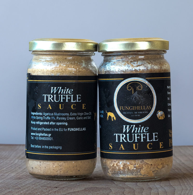 Ingredienτs: Agaricus bisporus mushrooms, extra virgin oil, white spring truffle 1%, cream, parsley, garlic, salt