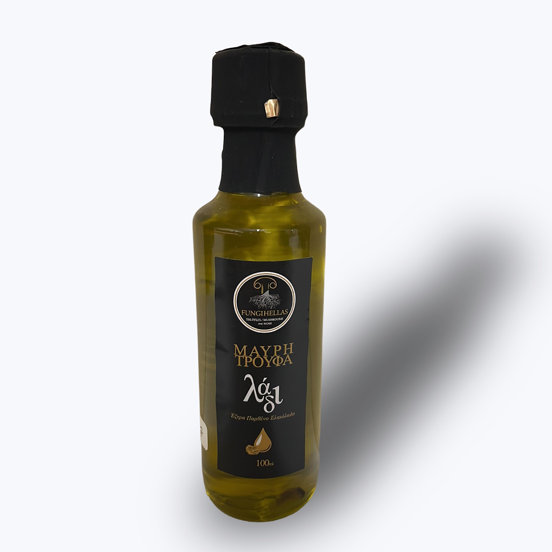 Extra virgin olive oil 99%, black truffle (Tuber Melanosporum) 0.2% dried (equivalent to 1% fresh truffle), flavorings.